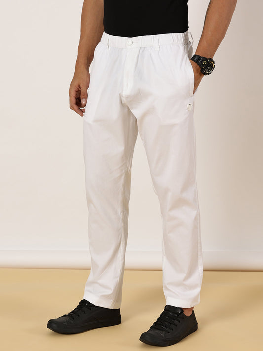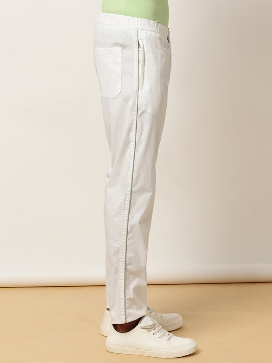 Elasticated Waist Zip Pocket Stretchable White Lounge Pants with Side Tape