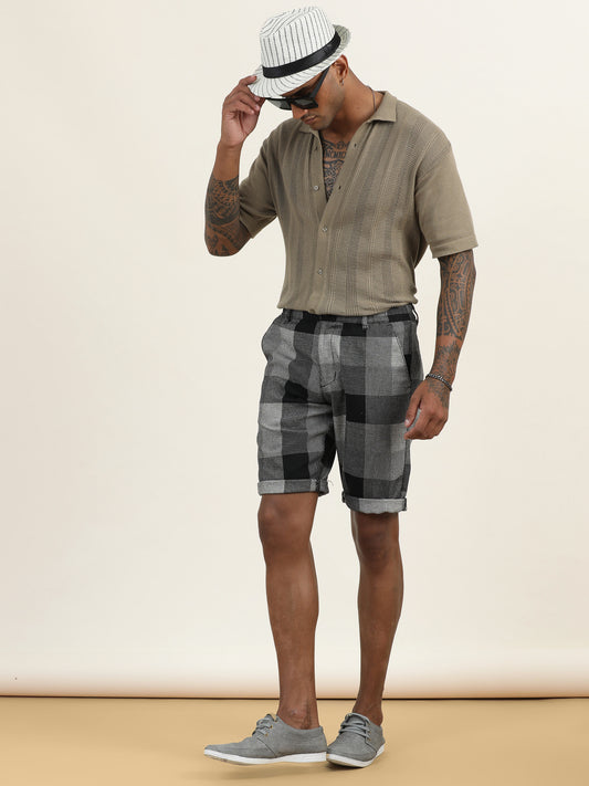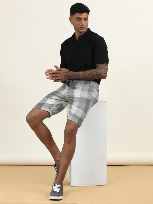 Elasticated Waist Multi Color Yarn Dyed Check Shorts