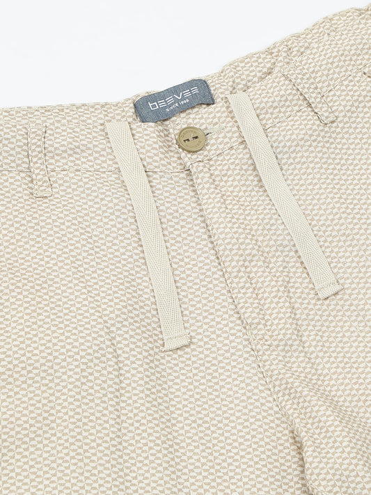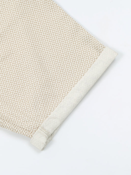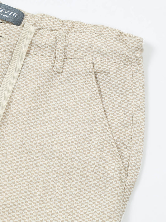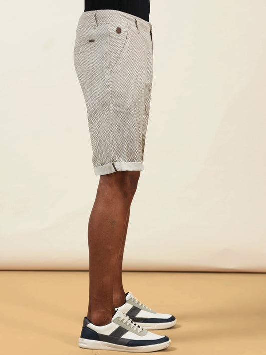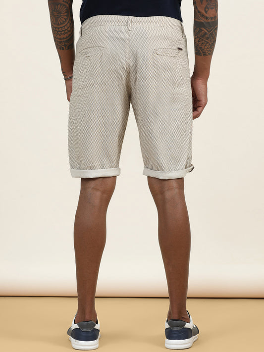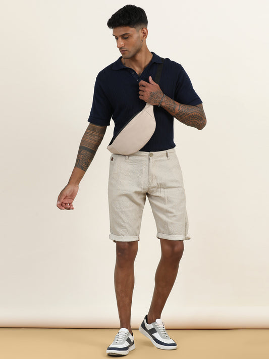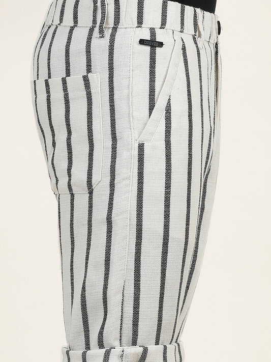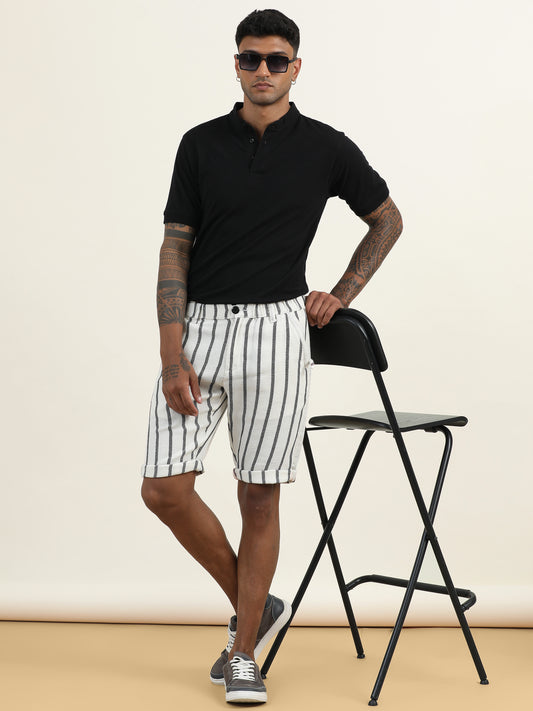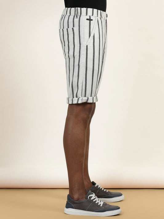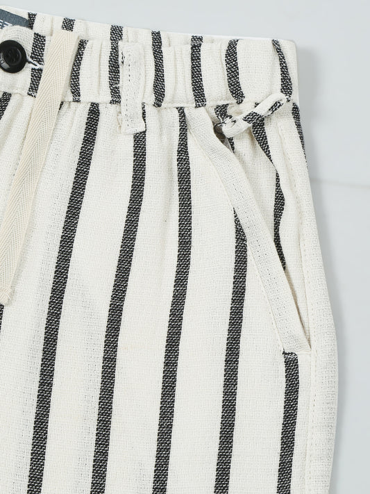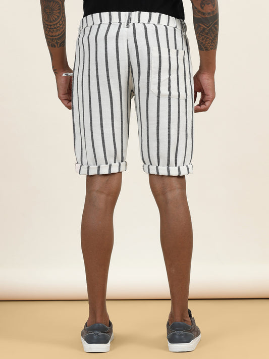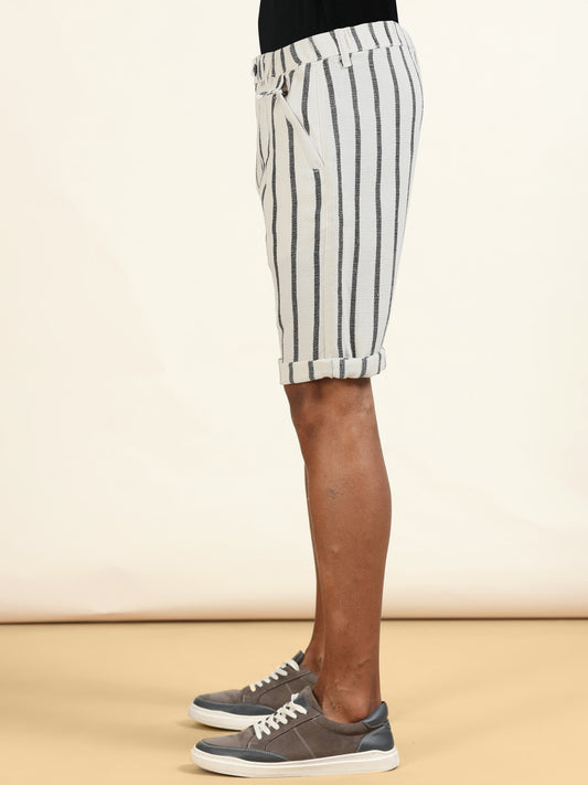 Elasticated Waist Zip Pocket Off White Yarn Dyed Striped Shorts