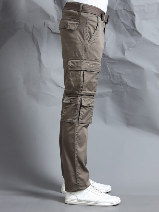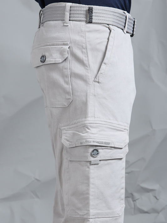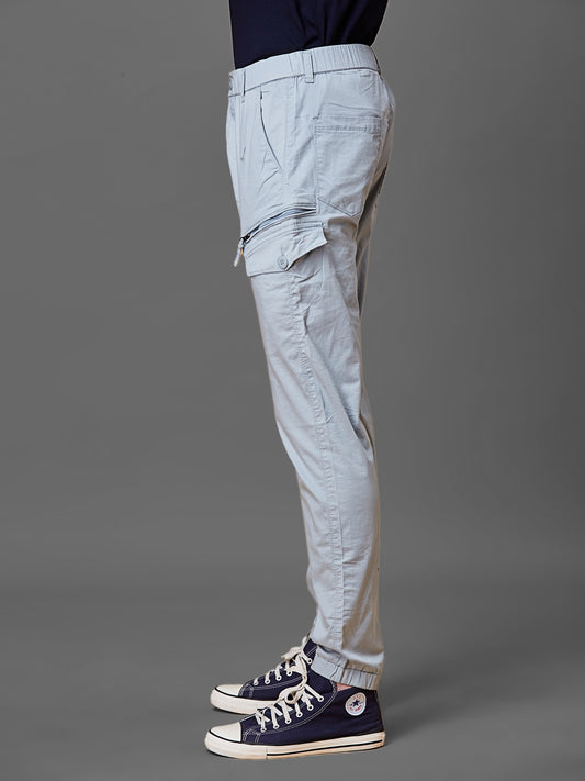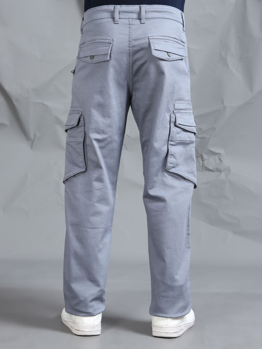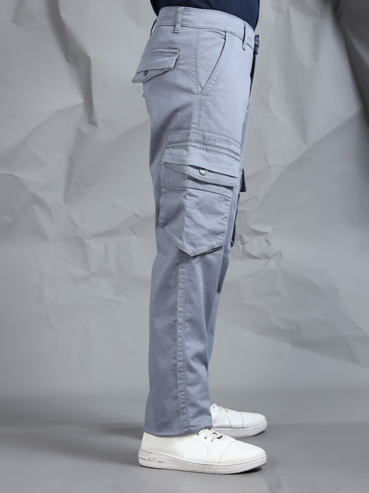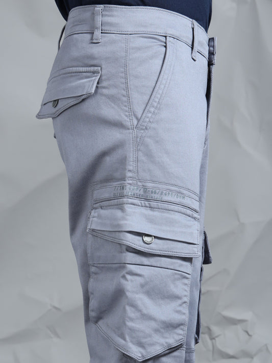 Elasticated Waist Multi Pocket Stretchable Grey Cargo