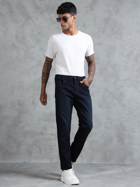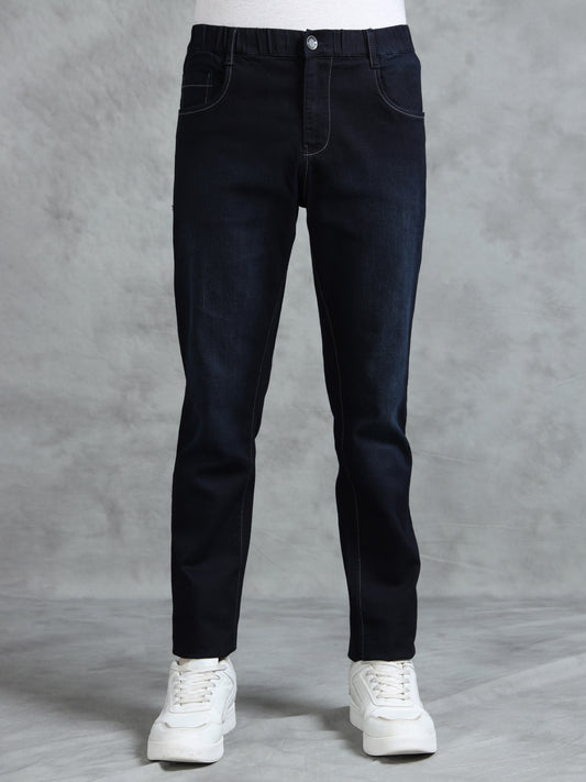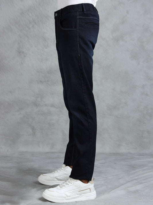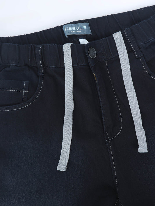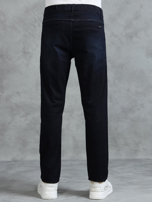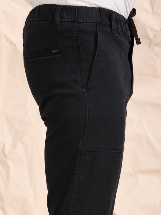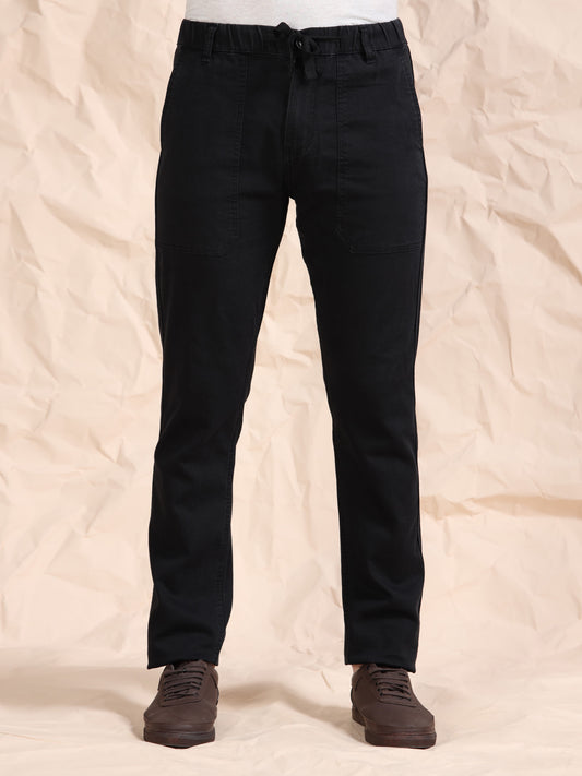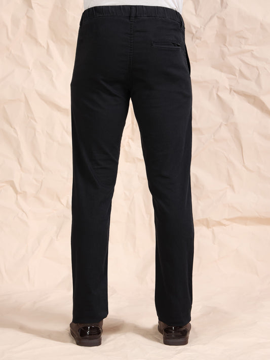 Black Denim Cotton Blend Solid Mid Rise Pyjama