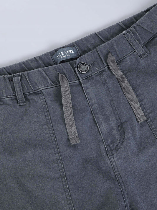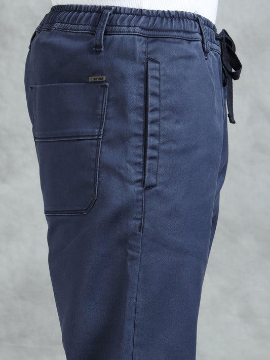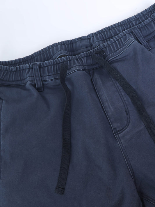 Cotton Lycra Navy Blue Mid Rise Cargo Pant with 7 Pockets Drawstring Closure