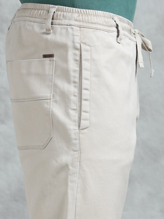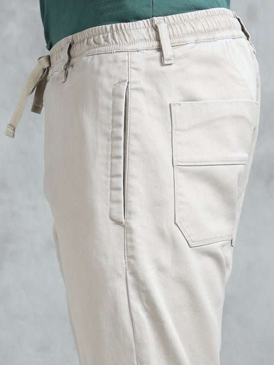 Cotton Lycra Sand Mid Rise Cargo Pant with 7 Pockets Drawstring Closure