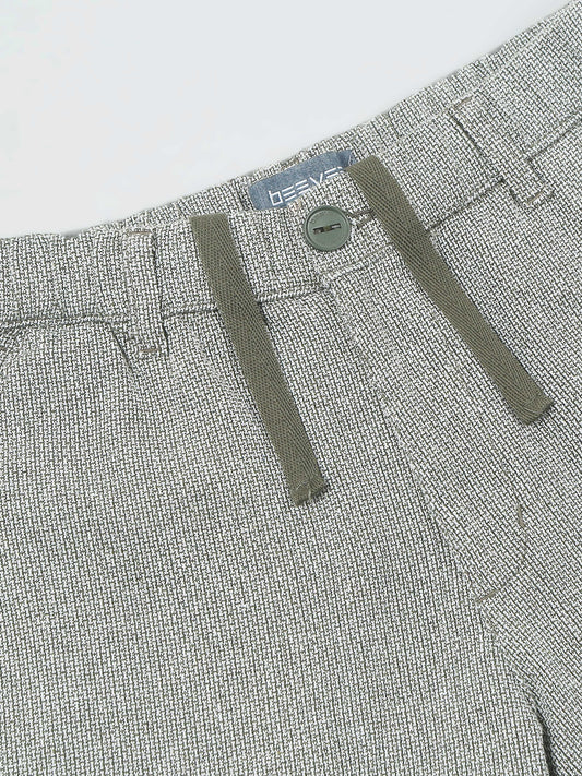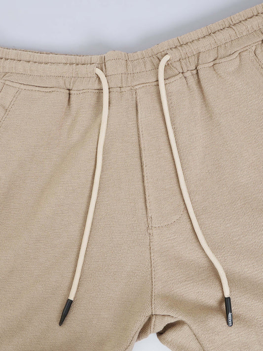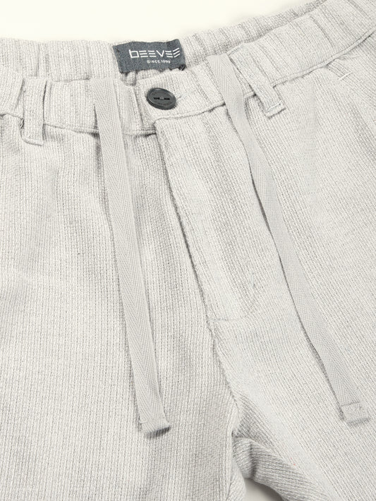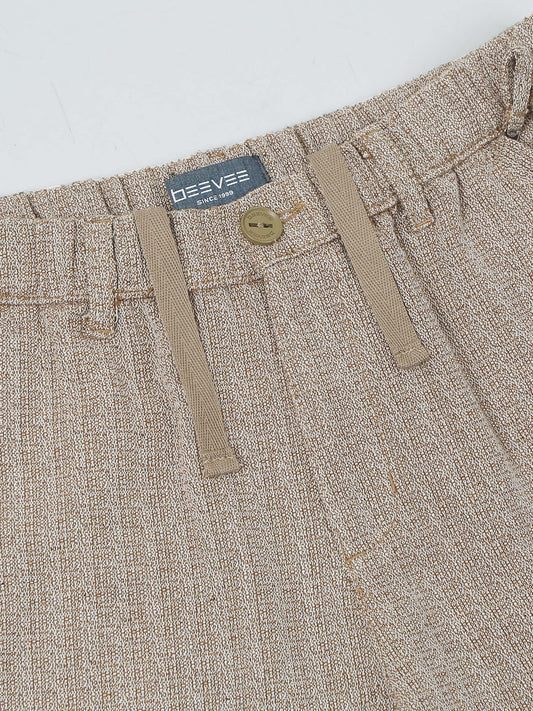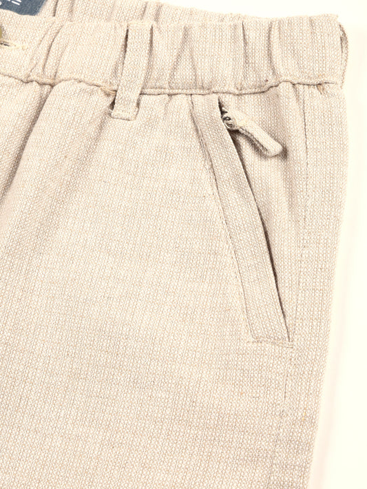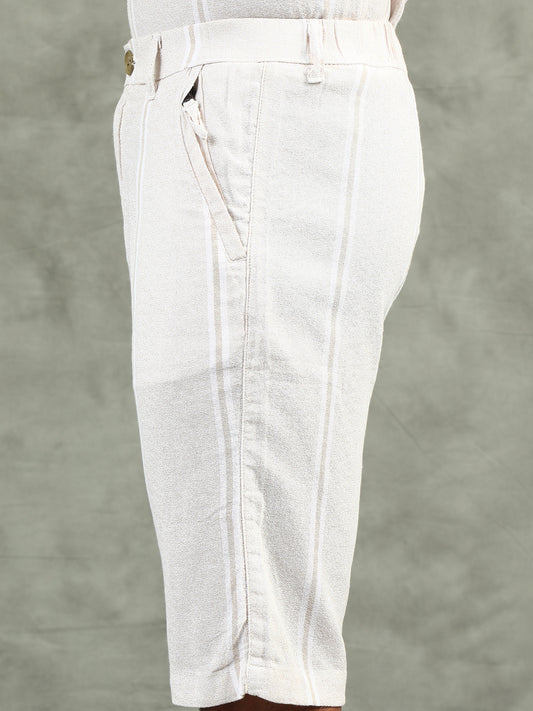 Yarn Dyed Elasticated Waist Beige Shorts