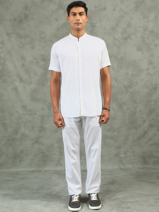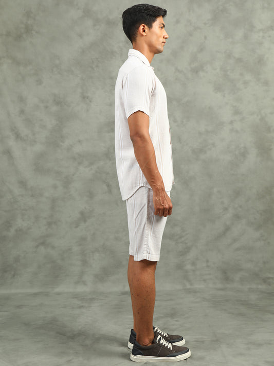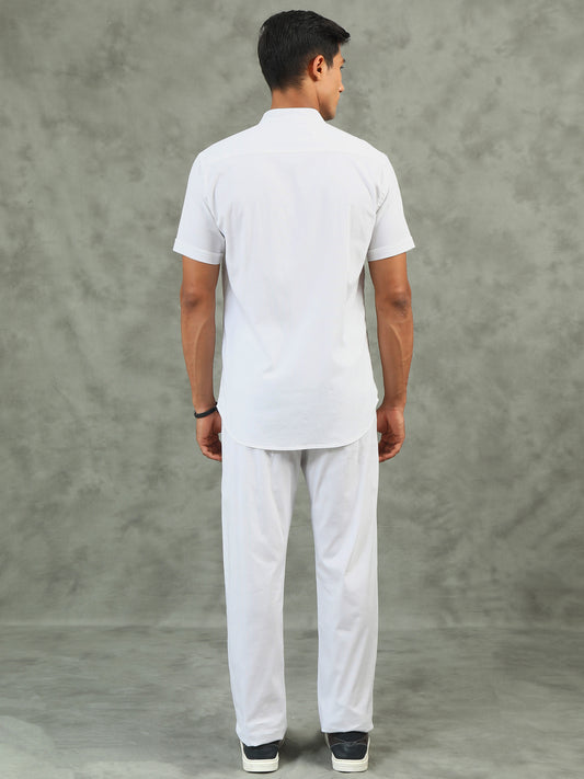 White Regular Fit Half Sleeve Solid Casual Co-ord Sets