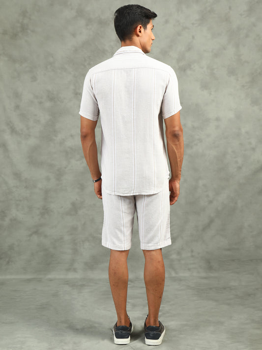 White Regular Fit Striped Cor-Ord Sets