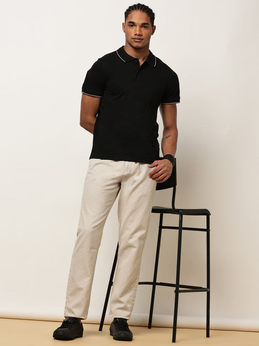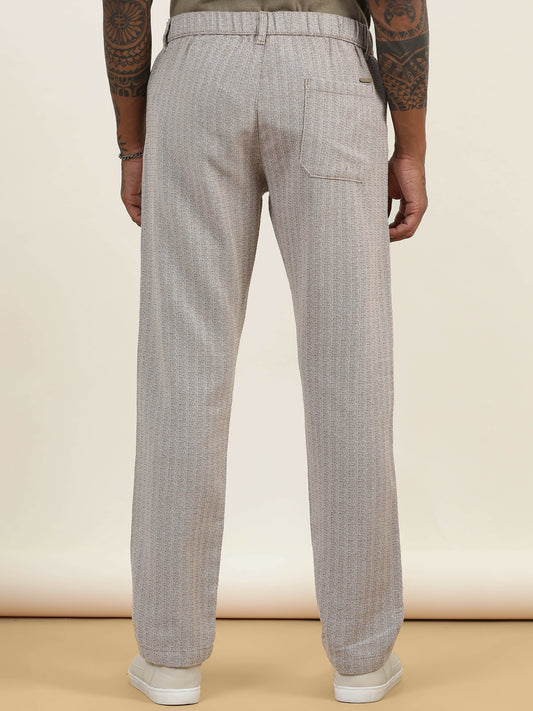 Yarn Dyed Elasticated Waist Zip Pocket Beige Lounge Pants
