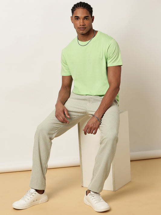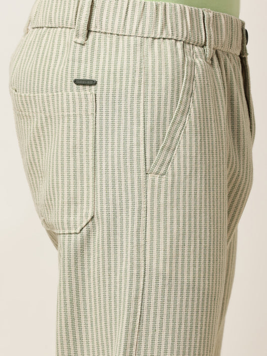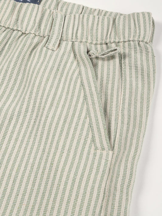 Yarn Dyed Stripe Elasticated Waist Green Lounge Pants