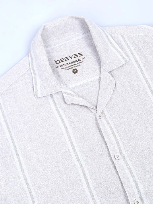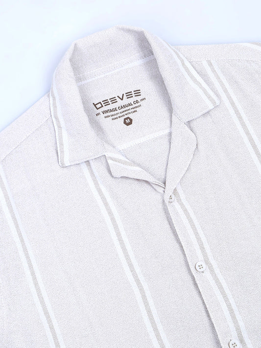 Striped Cream Regular Fit Knee-Length Casual Co-ord Set