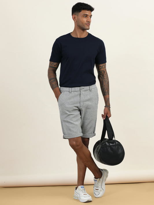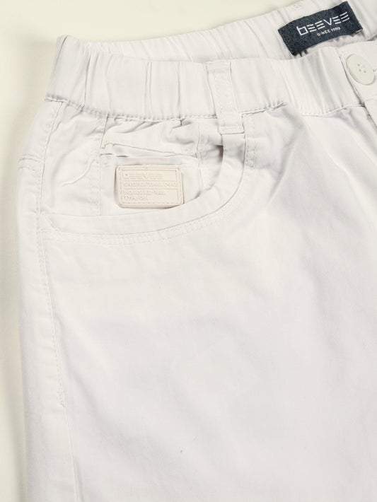 White Cotton Solid Shorts