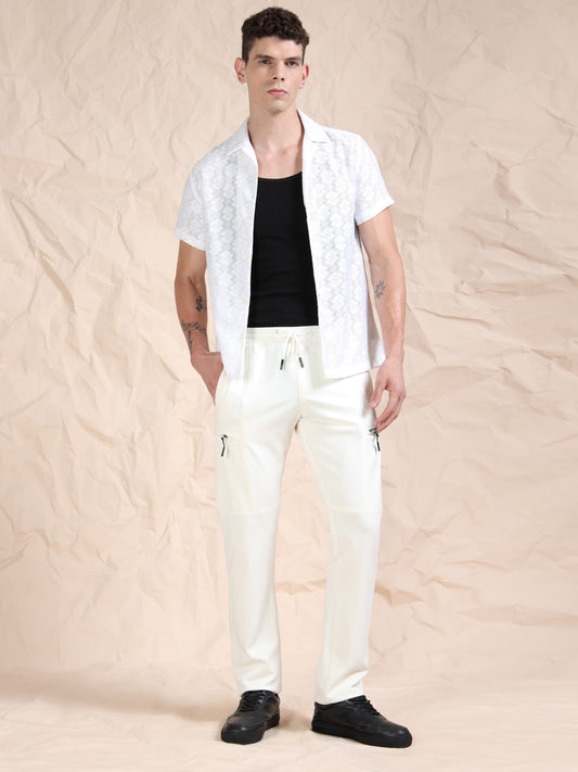 Stretchable Light White Track Pant
