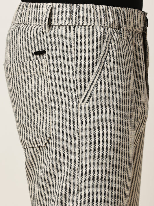 Yarn Dyed Stripe Elasticated Waist Black Lounge Pants
