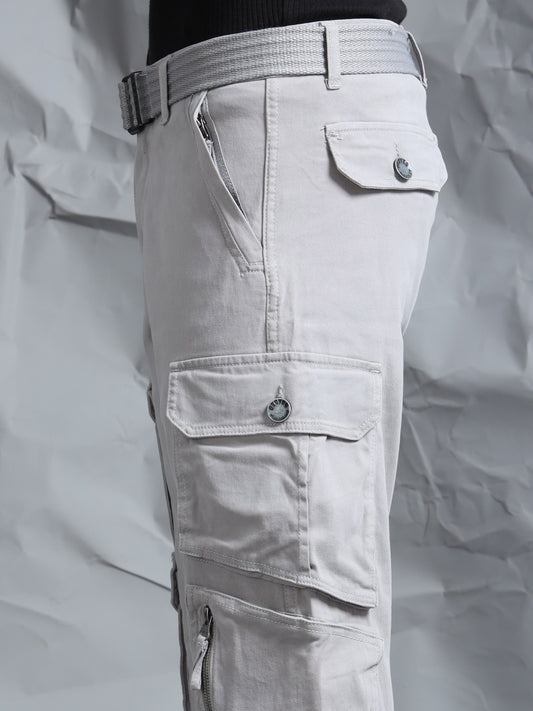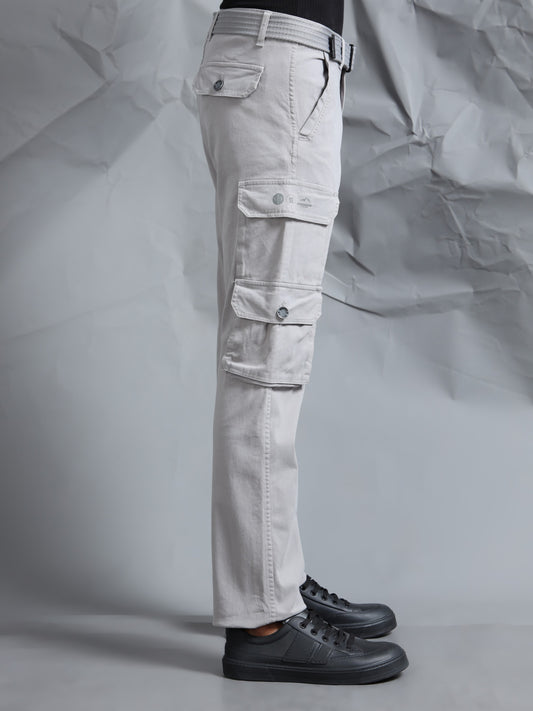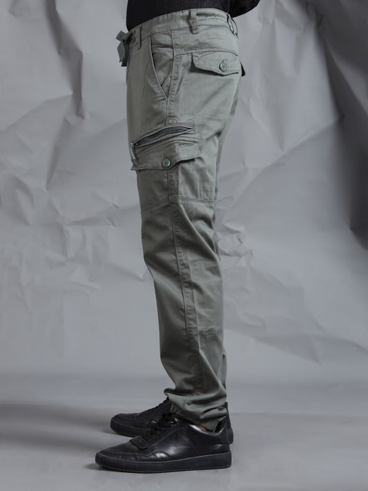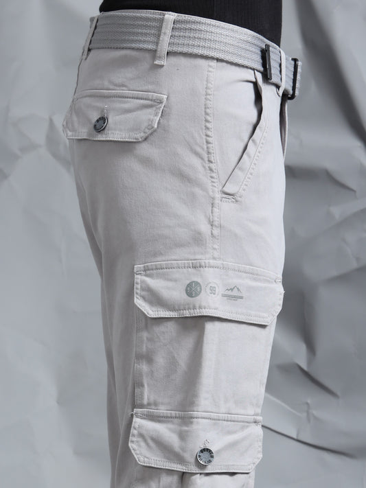 Cotton Lycra Light Grey Cargo Pant with 8 Pockets