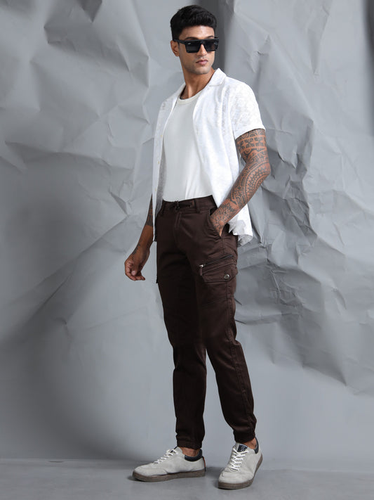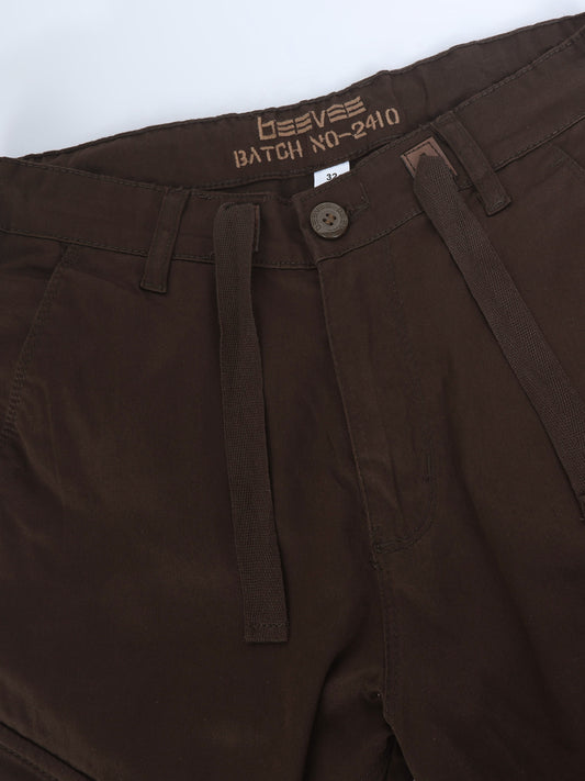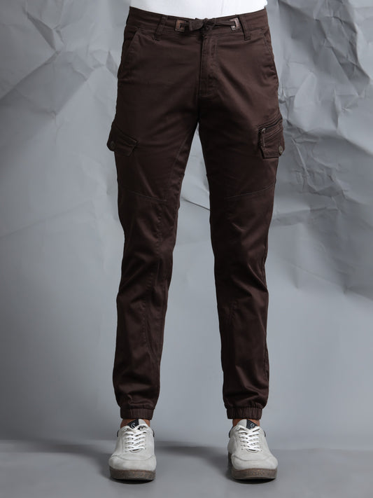Cotton Lycra Coffee Cargo Pants with 7 Pockets