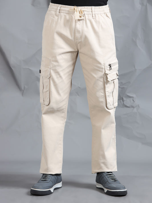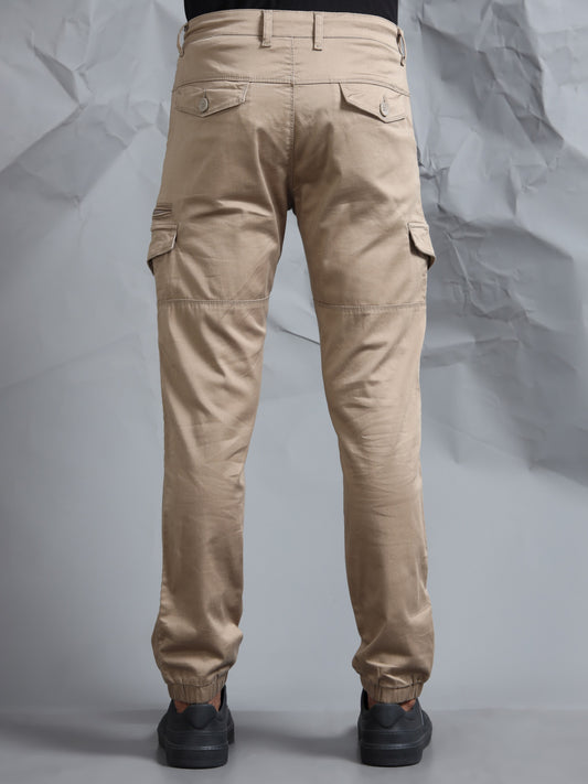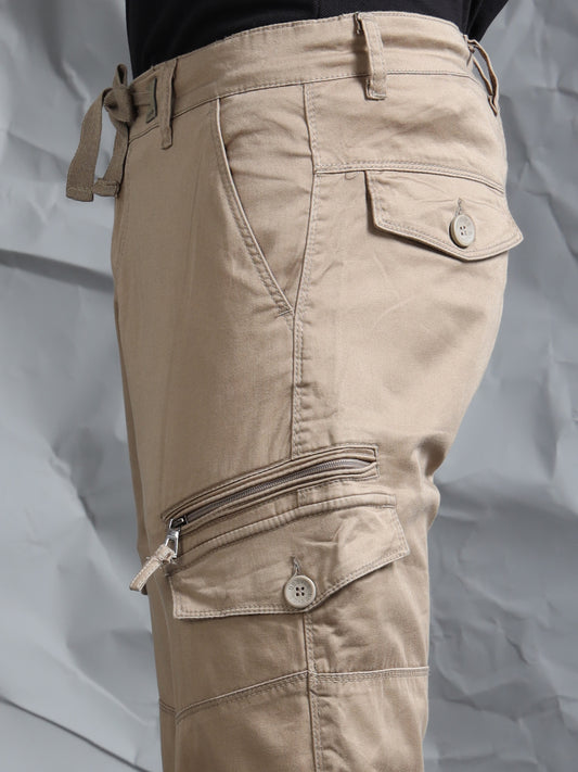 Cotton Lycra Sand Mid Rise Cargo Pant with 7 Pockets Drawstring Closure