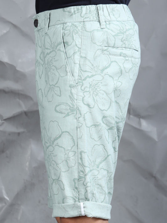 Cotton Lycra Casual Mint Printed Shorts