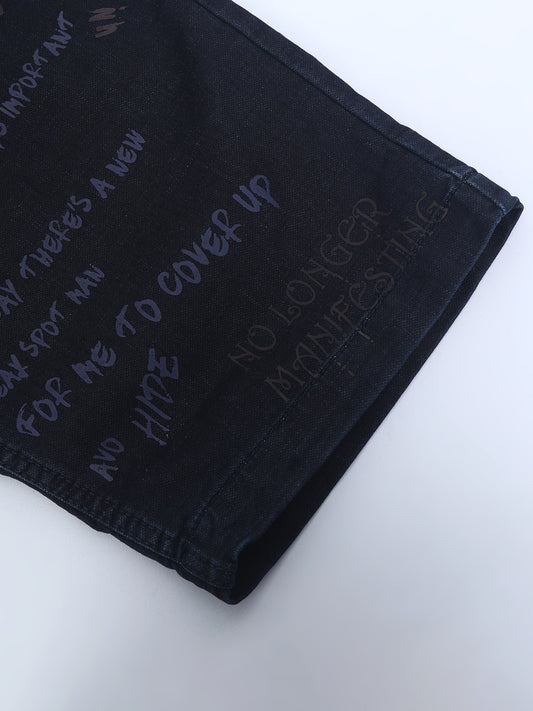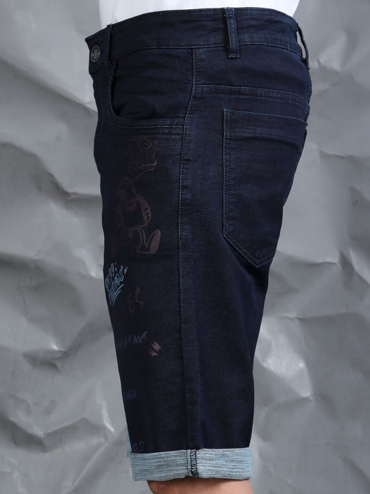 Cotton Navy Text Printed Casual Shorts