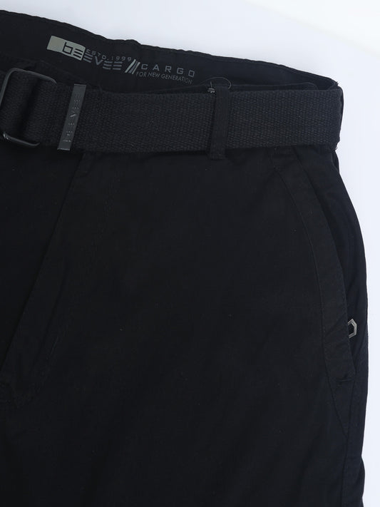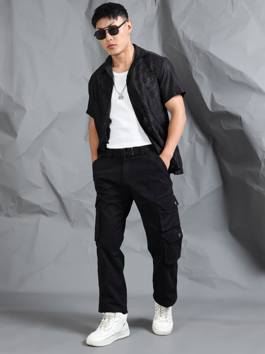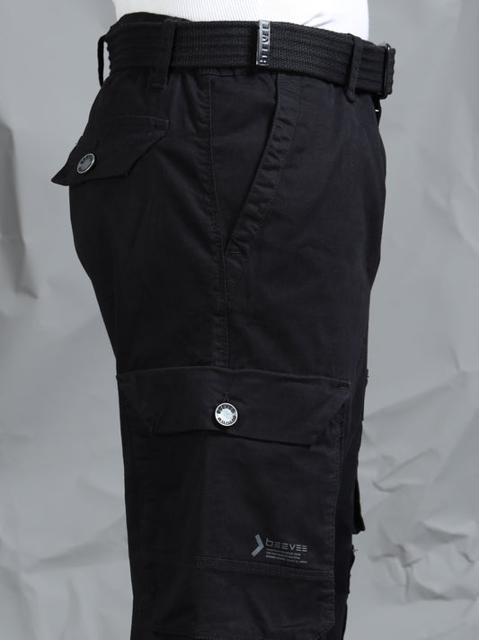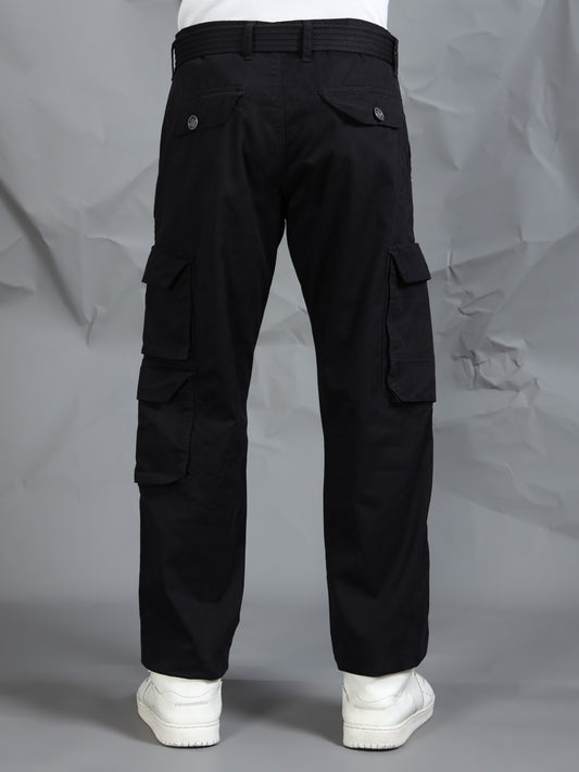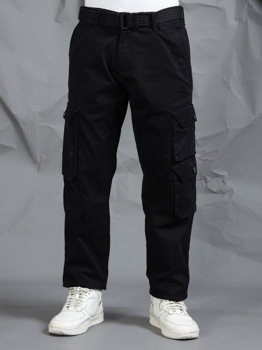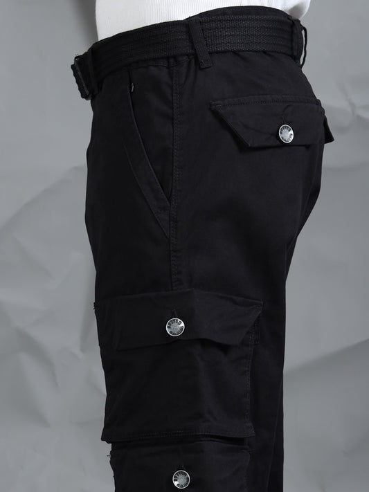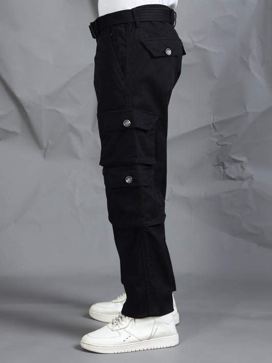 Cotton Lycra Black Mid Rise Cargo Pant with 7 Pockets