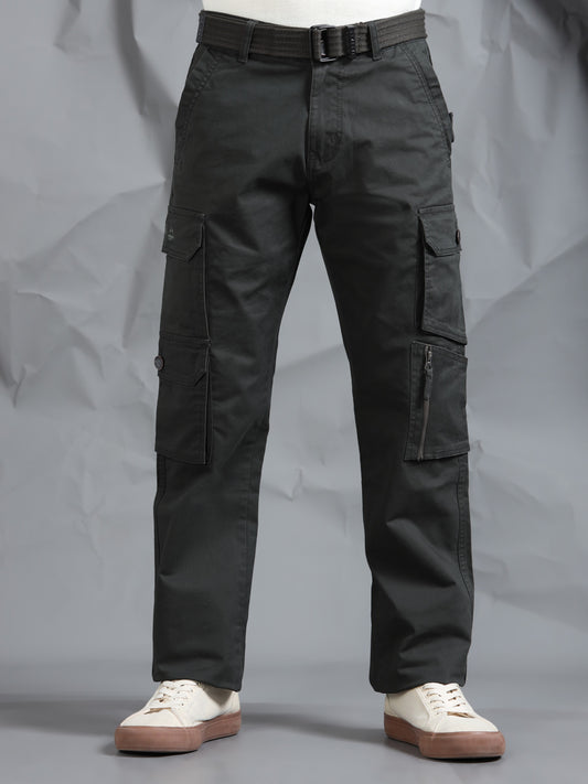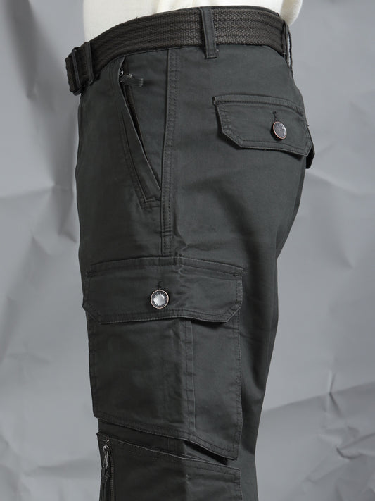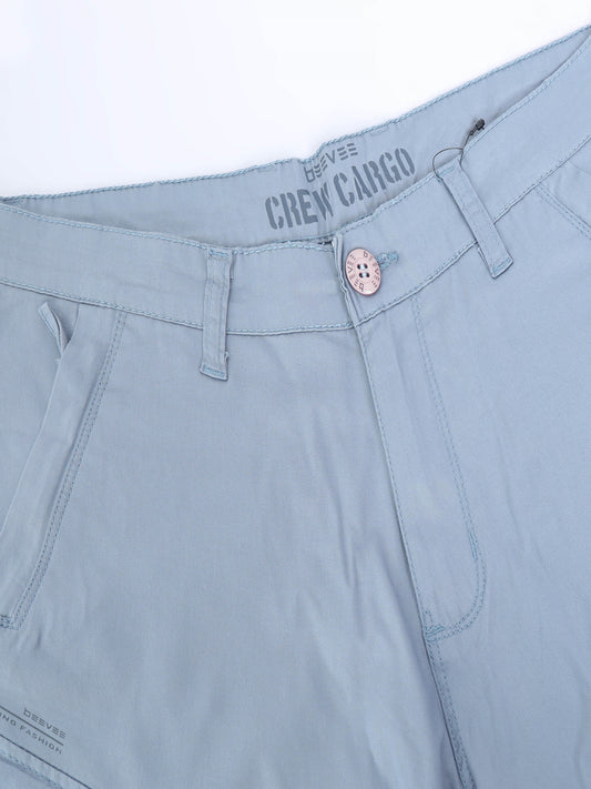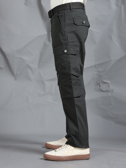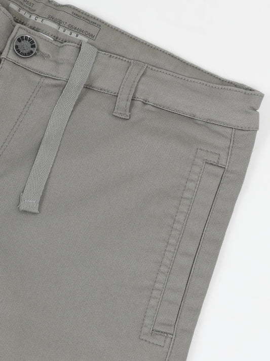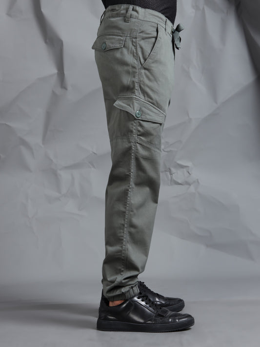 Cotton Lycra Steel Grey Mid Rise Cargo Pant with 7 Pockets