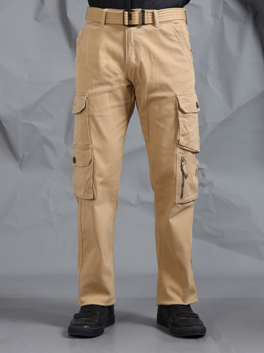 Cotton Lycra Khaki Cargo Pant with 8 Pockets