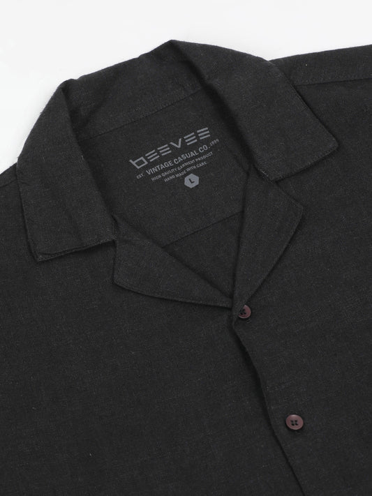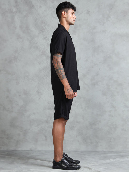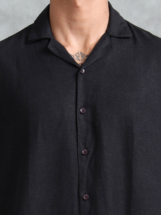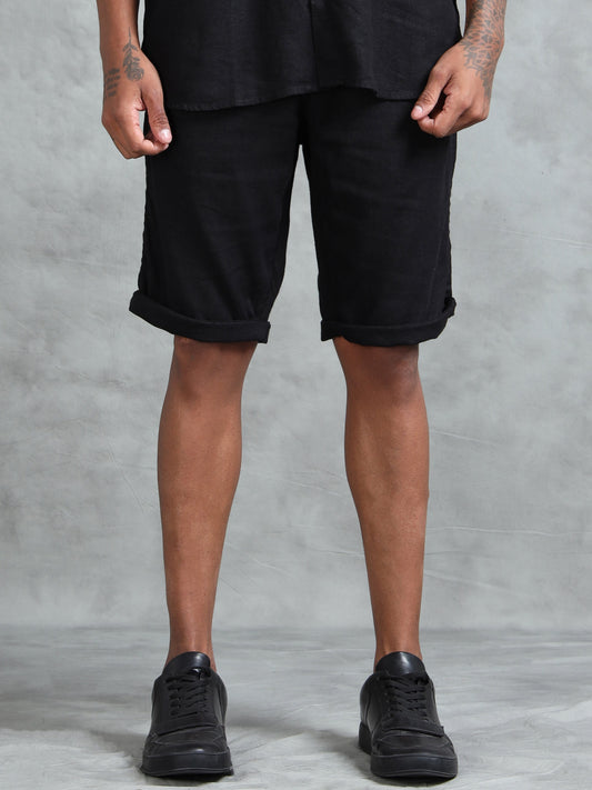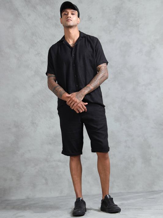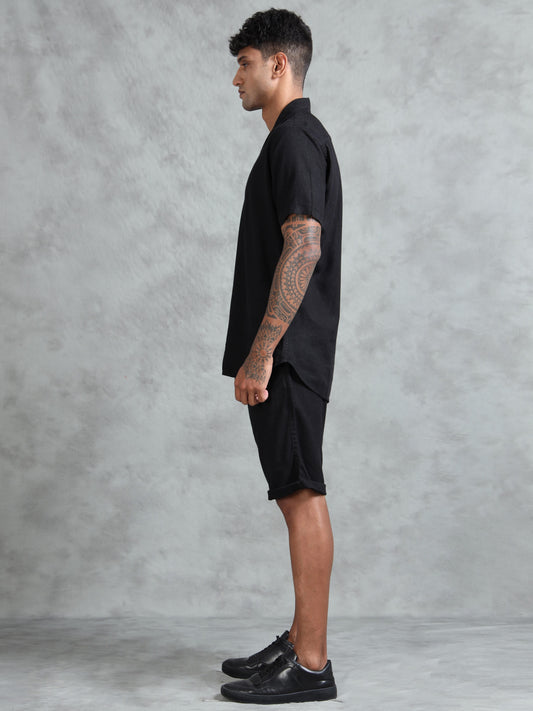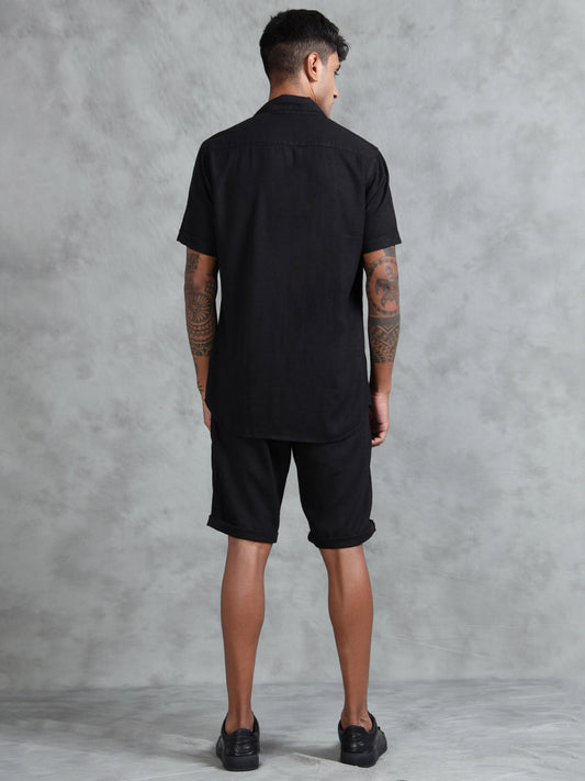 Cotton Viscose Linen Blend Black Cord Set