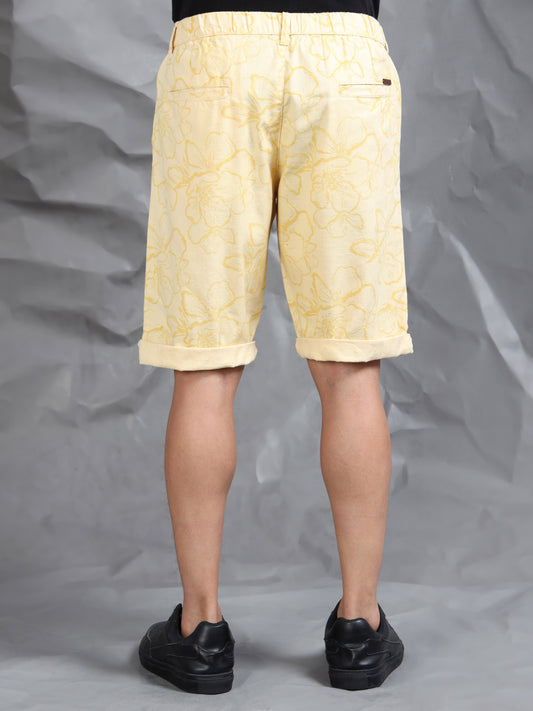 Cotton Lycra Casual Light Yellow Printed Shorts
