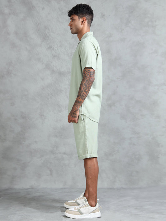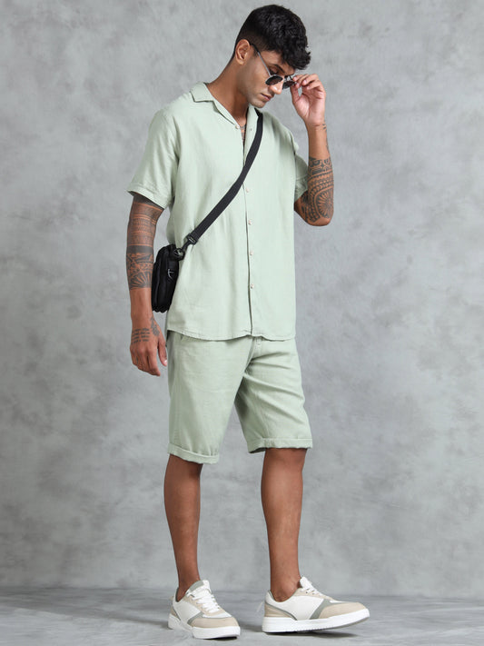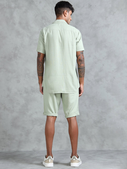 Cotton Viscose Linen Blend Mint Cord Set