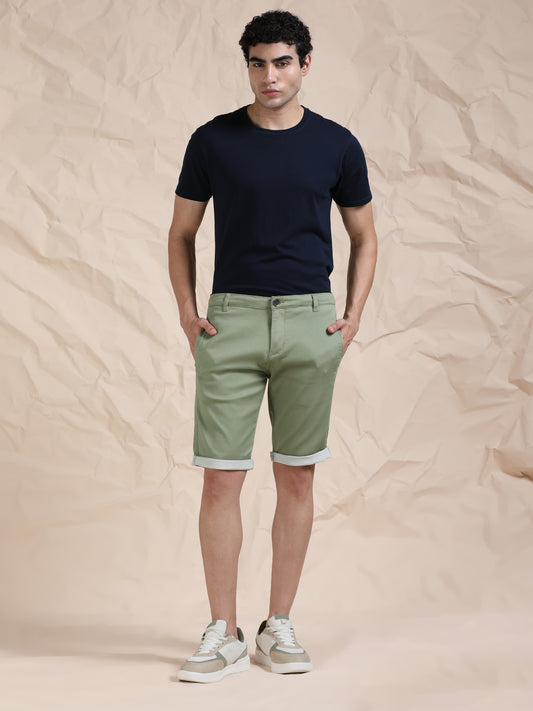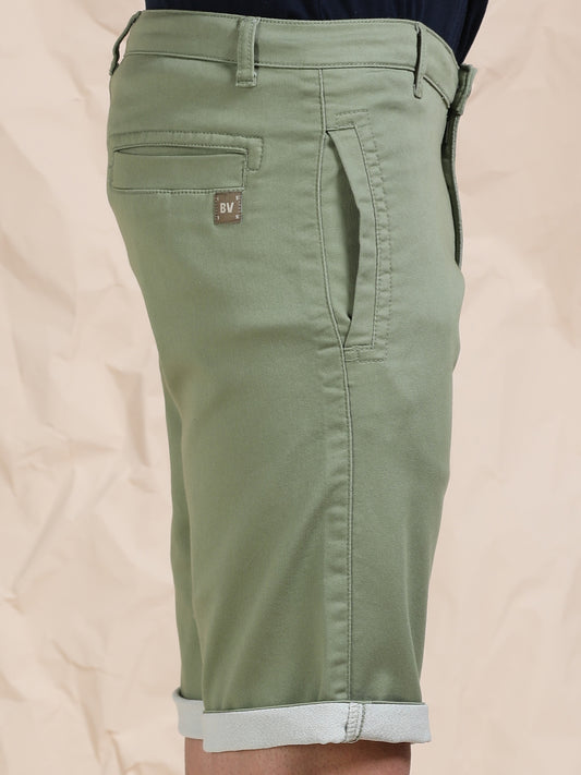 Cotton Lycra Light Olive Shorts