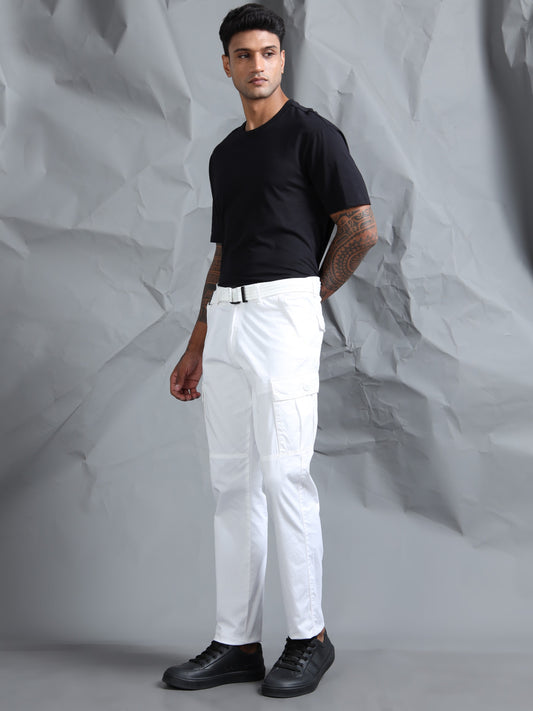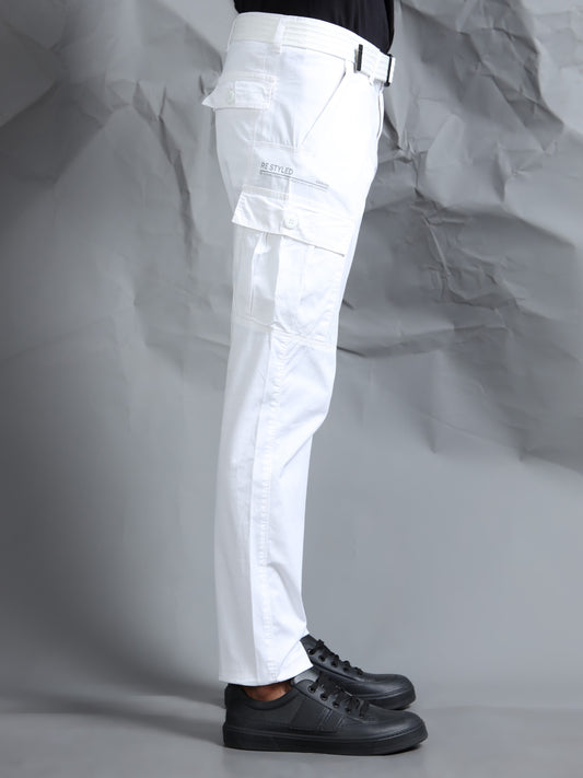 Cotton Lycra White Cargo Pant with 8 Pockets