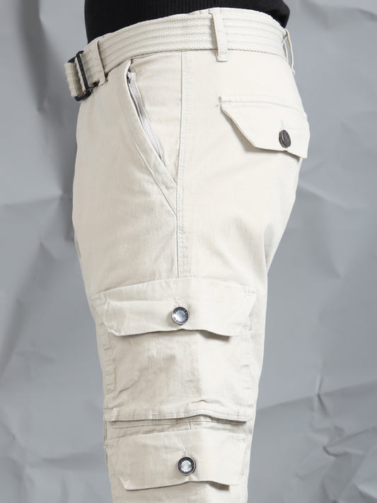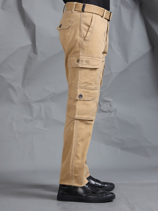 Cotton Lycra Sand Mid Rise Cargo Pant with 7 Pockets