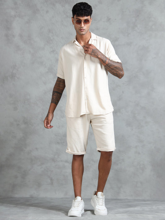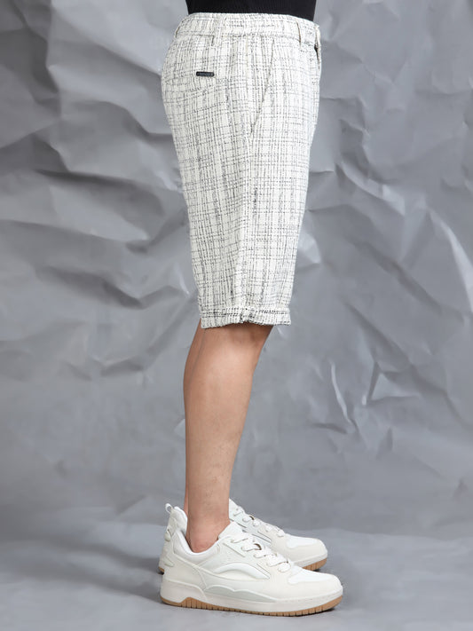 Cotton Lycra Casual Cream Printed Shorts