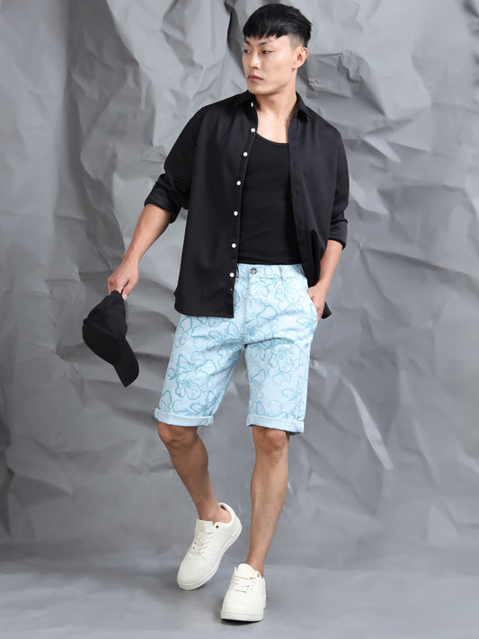 Cotton Lycra Casual Sky Printed Shorts