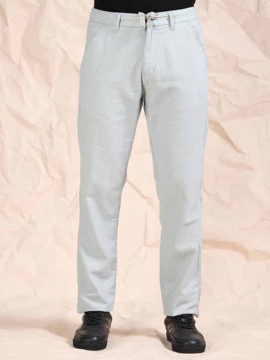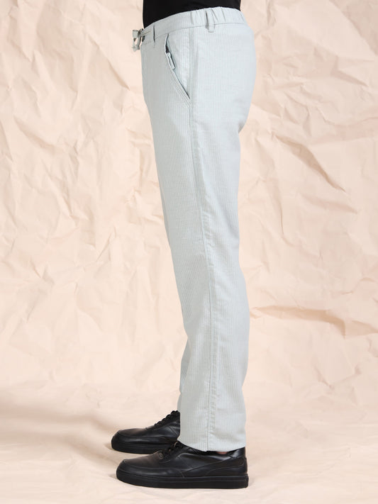 Elasticated Waist Zip Pocket Stretchable Light Grey Lounge Pants with Side Tape