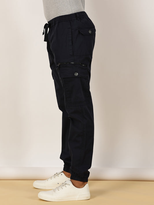 Elasticated Waist Zip Pocket Stretchable Navy Jogger Cargo