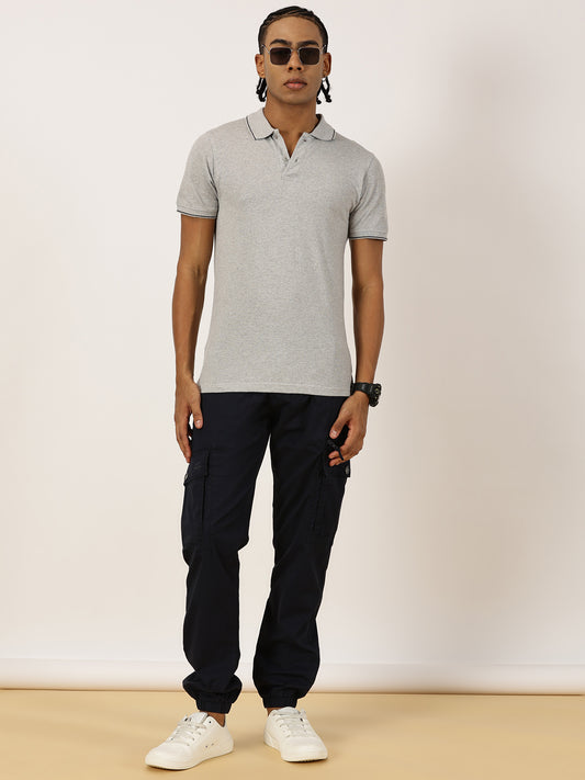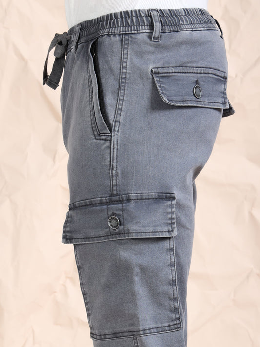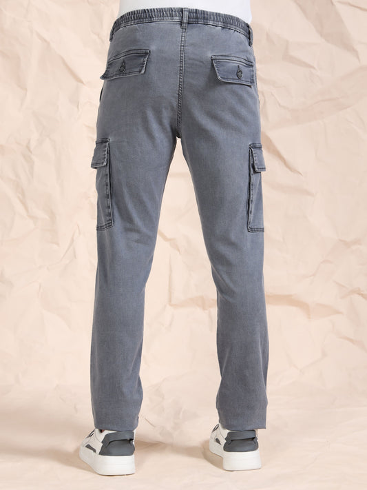 Elasticated Waist Zip Pocket Stretchable Grey Jogger Cargo