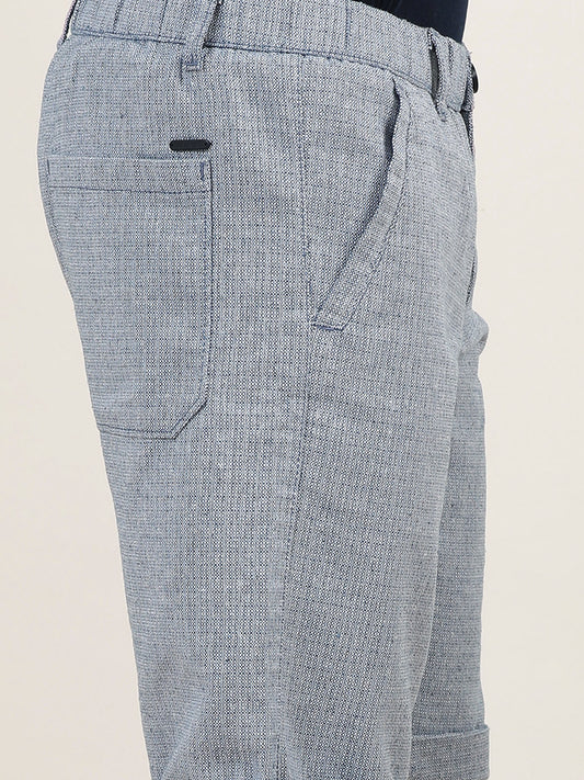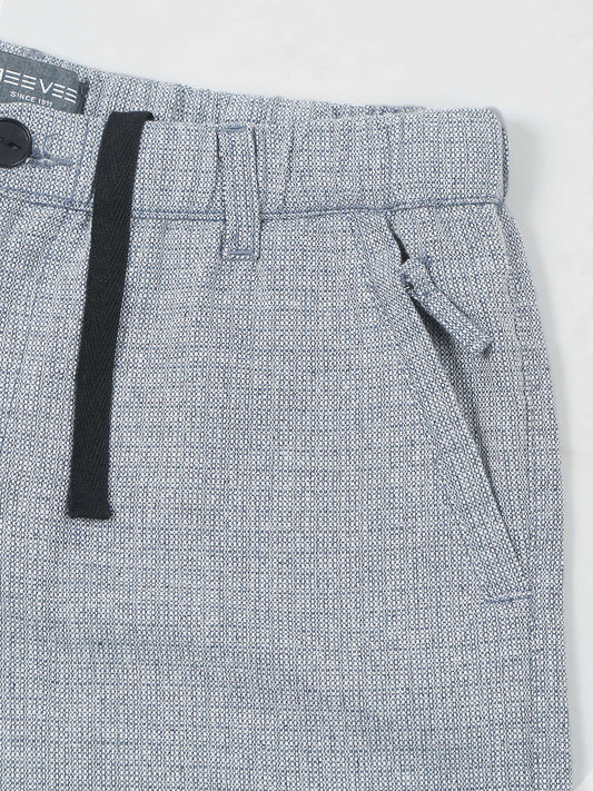 Elasticated Waist Zip Pocket Yarn Dyed Blue Shorts