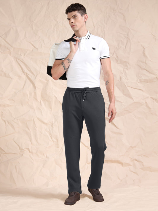 Elasticated Waist Zip Pocket Stretchable Grey Lounge Pants with Side Tape