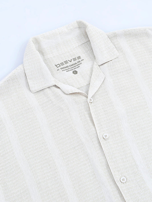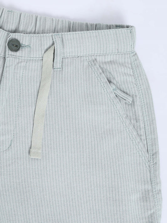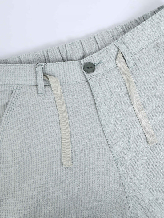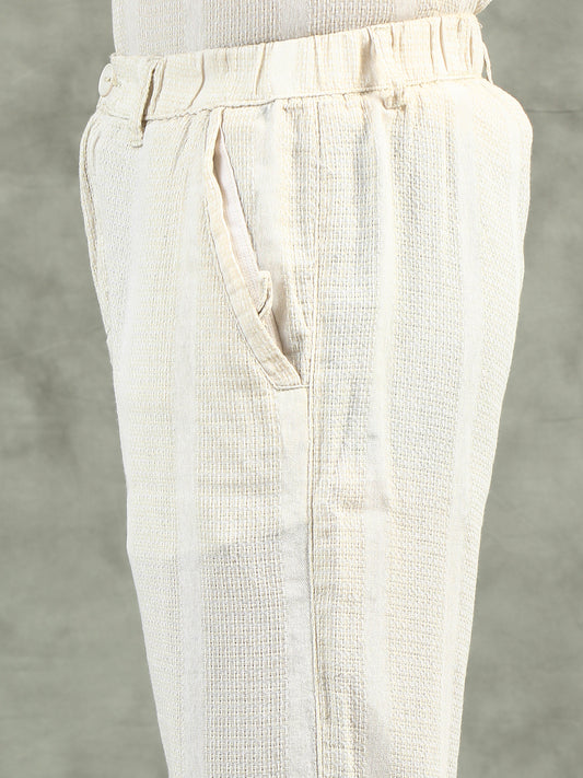 Elasticated Waist Zip Pocket Off White Yarn Dyed Striped Shorts