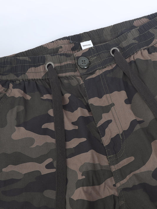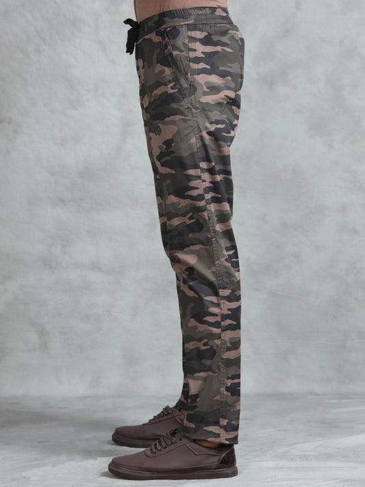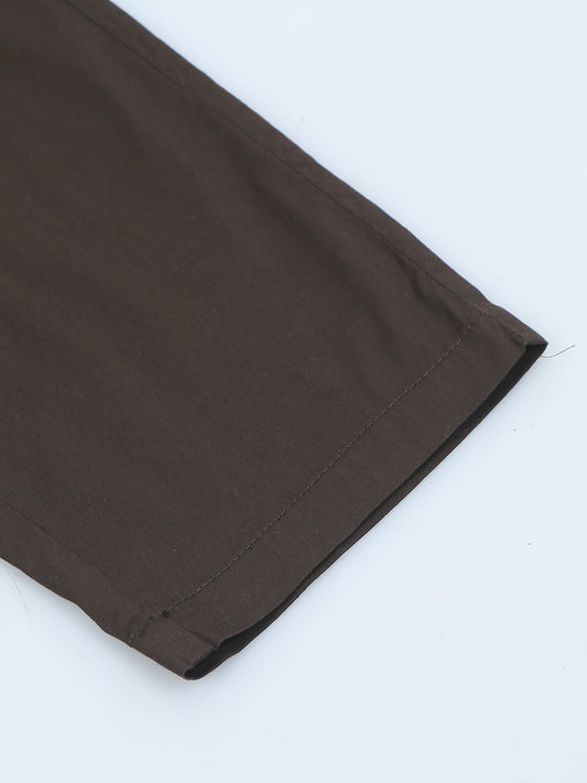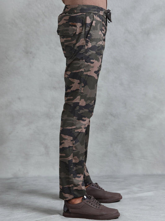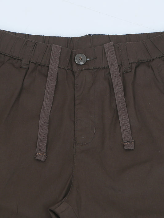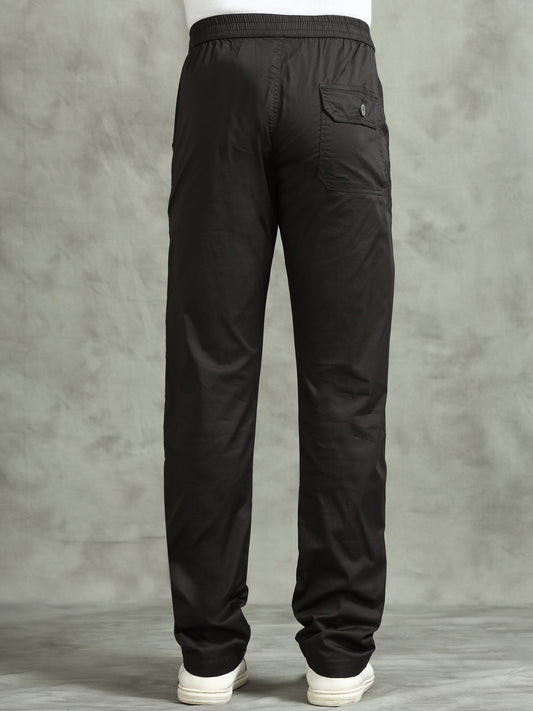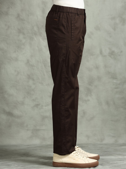 Elasticated Waist Zip Pocket Stretchable Brown Jogger Cargo