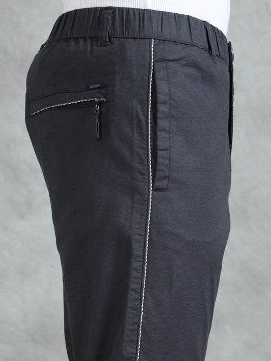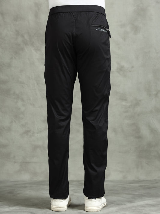 Elasticated Waist Zip Pocket Stretchable Black Lounge Pants with Side Tape