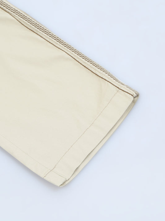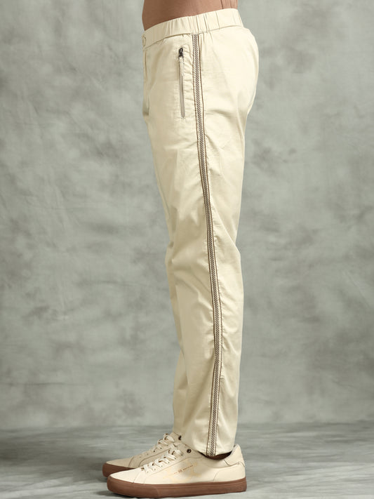 Elasticated Waist Zip Pocket Stretchable Beige Lounge Pants with Side Tape