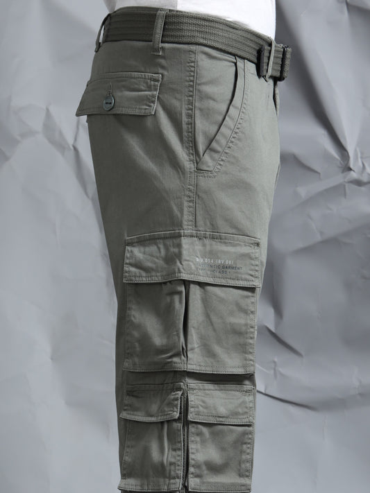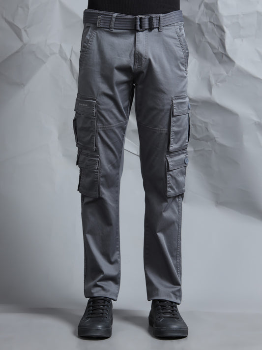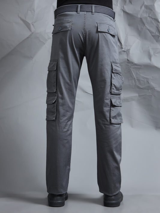 Cotton Lycra Steel Grey Mid Rise Cargo Pant with 7 Pockets