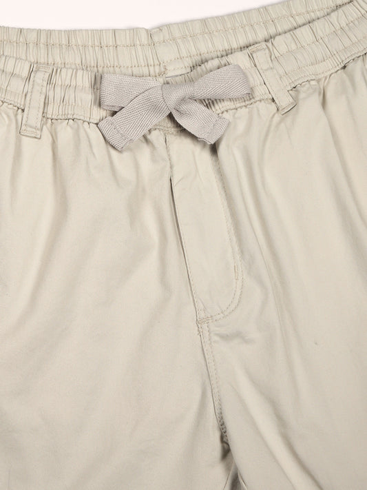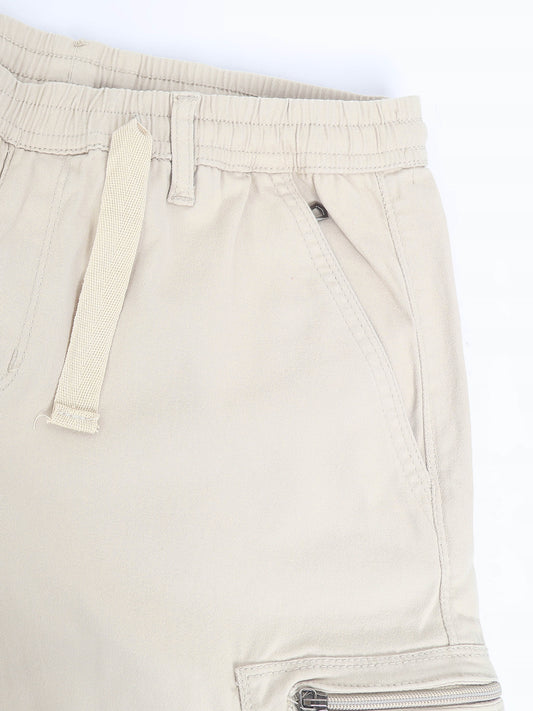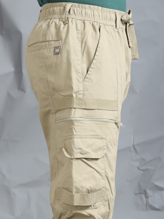 Cotton Lycra Sand Mid Rise Cargo Pant with 7 Pockets Drawstring Closure