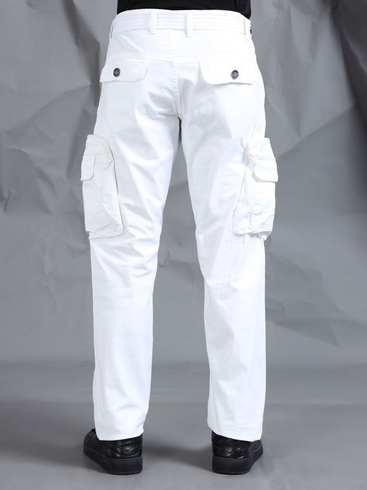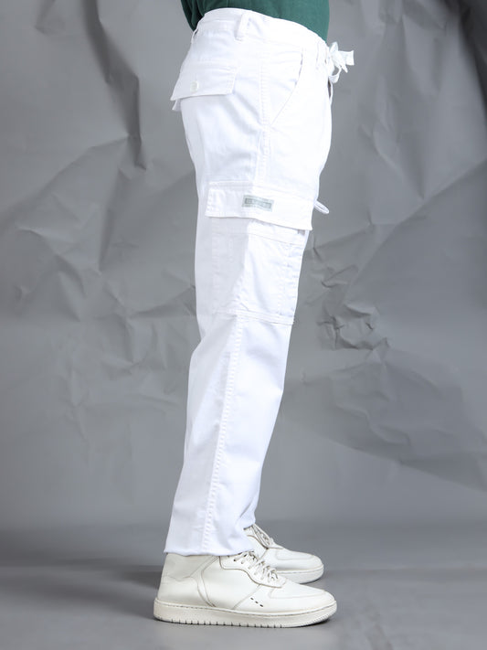 Cotton Lycra White Cargo Pant with 8 Pockets