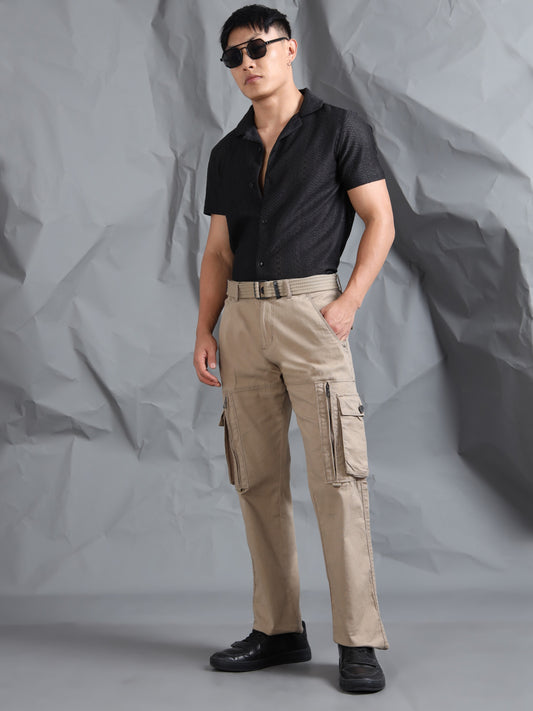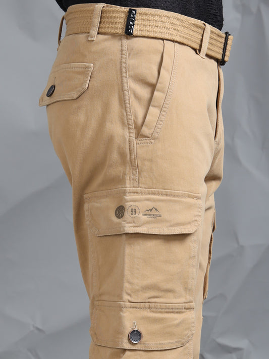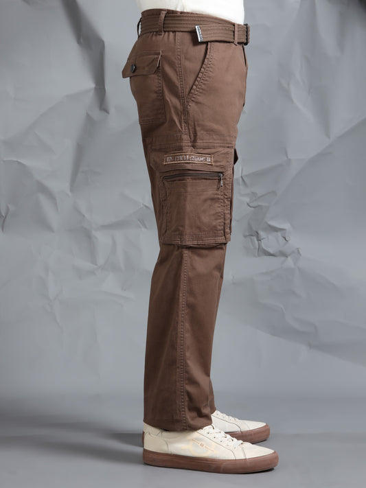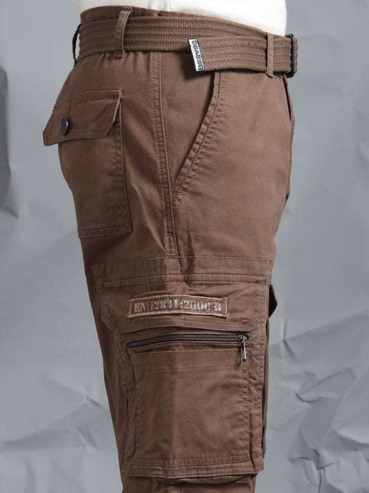 -30% OFFMen LT Brown Cargo Pants With Belt
