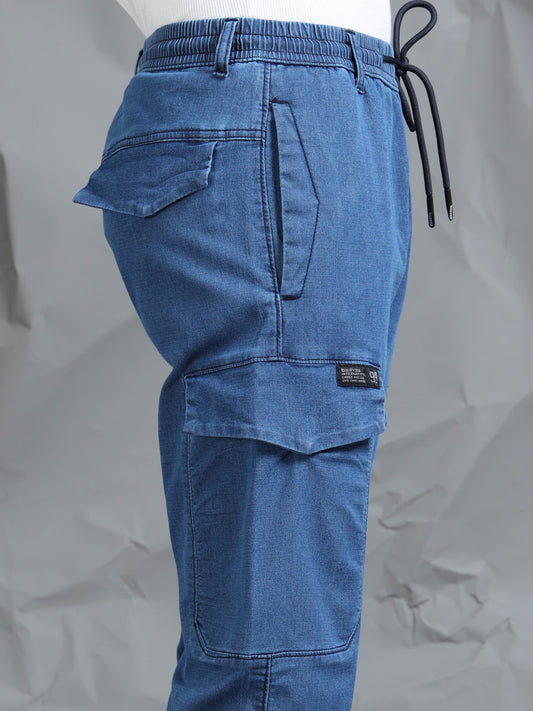 Cotton Lycra M Blue Cargo Pant with 6 Pockets