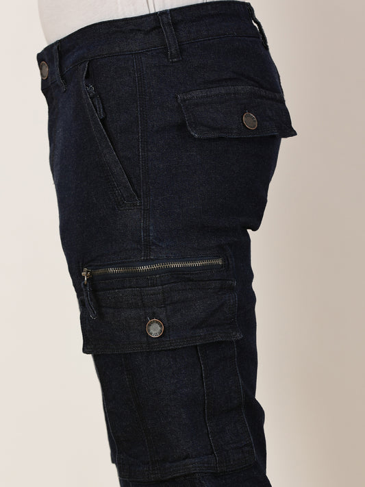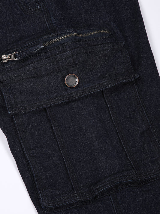 Cotton Blend Black Cargo Pant with 6 Pockets