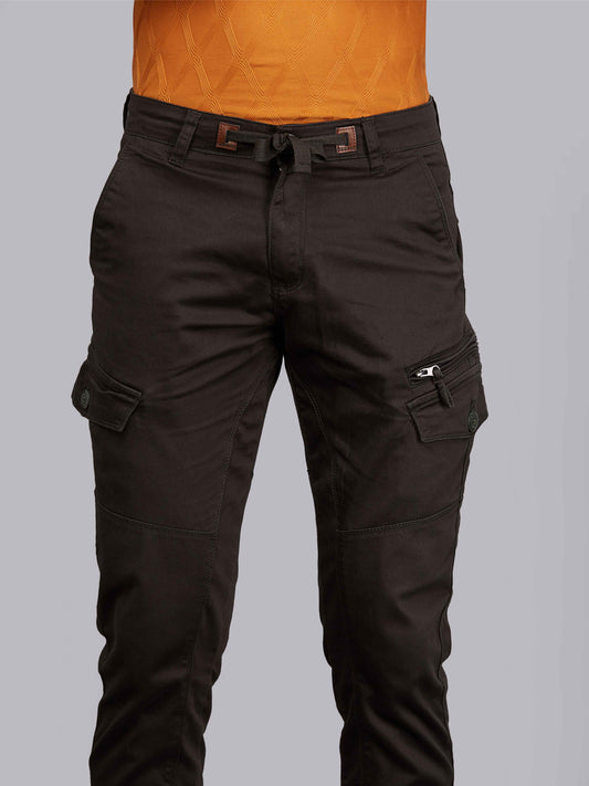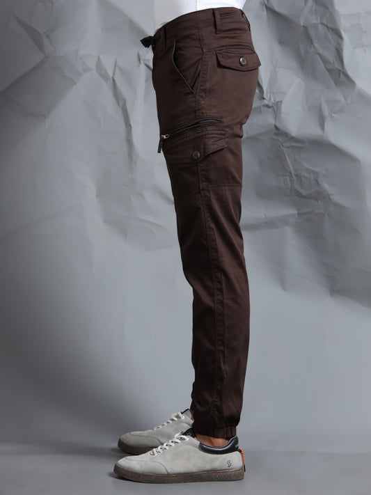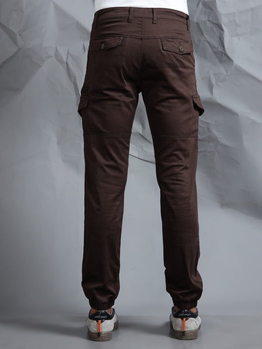 Cotton Lycra Coffee Cargo Pants with 7 Pockets