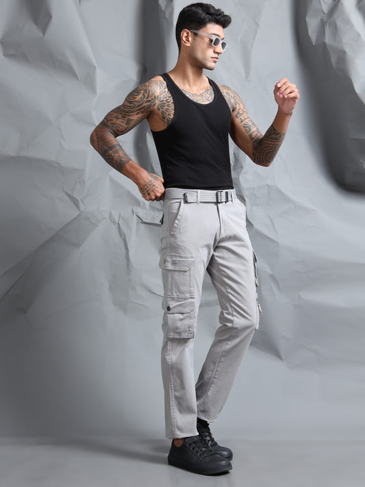 Cotton Lycra Light Grey Cargo Pant with 8 Pockets