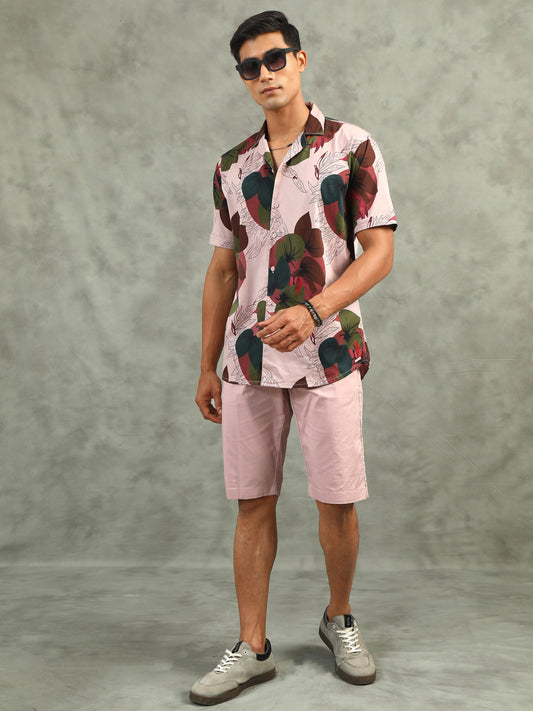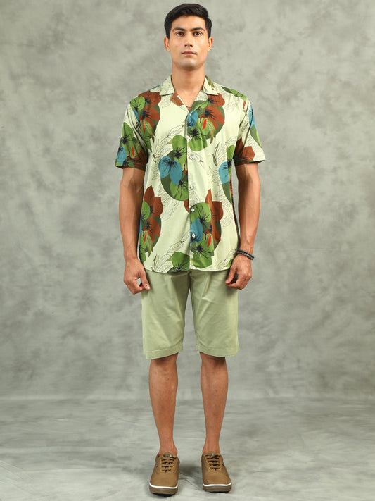 Light Pista Regular Fit Leaf Print Co-ord Sets